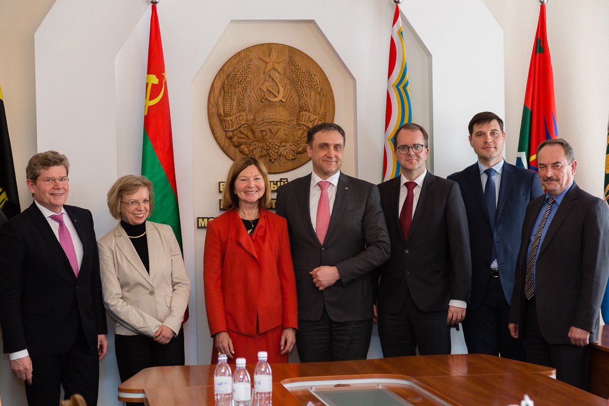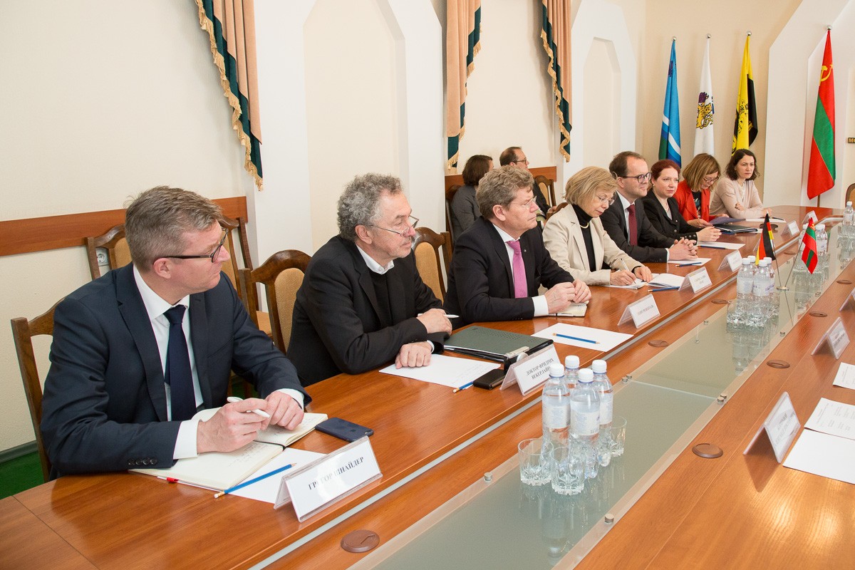 Тирасполь, 22 марта. /Новости Приднестровья/. Верховный Совет ПМР посетила делегация Германии. Во встрече с председателем приднестровского парламента Александром Щербой и депутатами высшего законодательного органа ПМР Александром Коршуновым и Виктором Гузуном приняли участие посол ФРГ в Молдове Ульрике Мария Кноц, председатель фракции социал-демократов Ландтага Баварии Маркус Риндершпахер и ещё нескольких депутатов Ландтага.