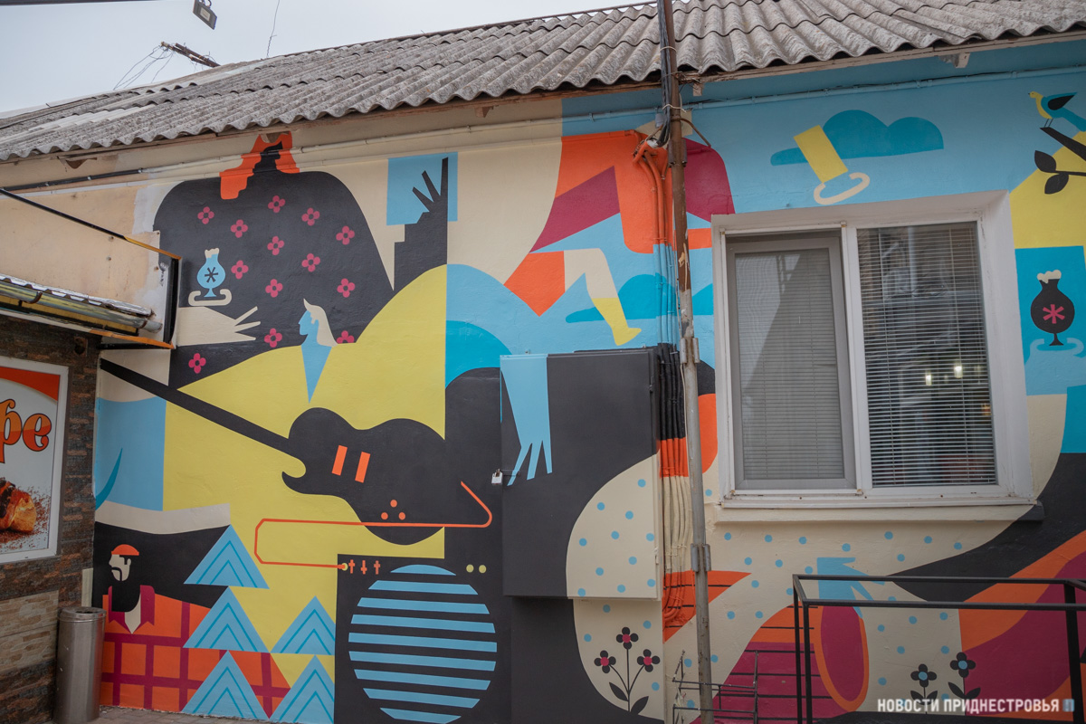 28 Янв.., 2022, 14:52Тирасполь, 28 января. /Новости Приднестровья/. Фасадная роспись Олеси Балтаг стала визитной карточкой не только заведения, готовящегося к открытию, но отчасти и города. Неприметный ранее закуток в центре Тирасполя заиграл яркими красками. Простые образы летней композиции приглашают в «Одесский дворик» и уже издалека дарят прохожим хорошее настроение, рассказывает художница.
