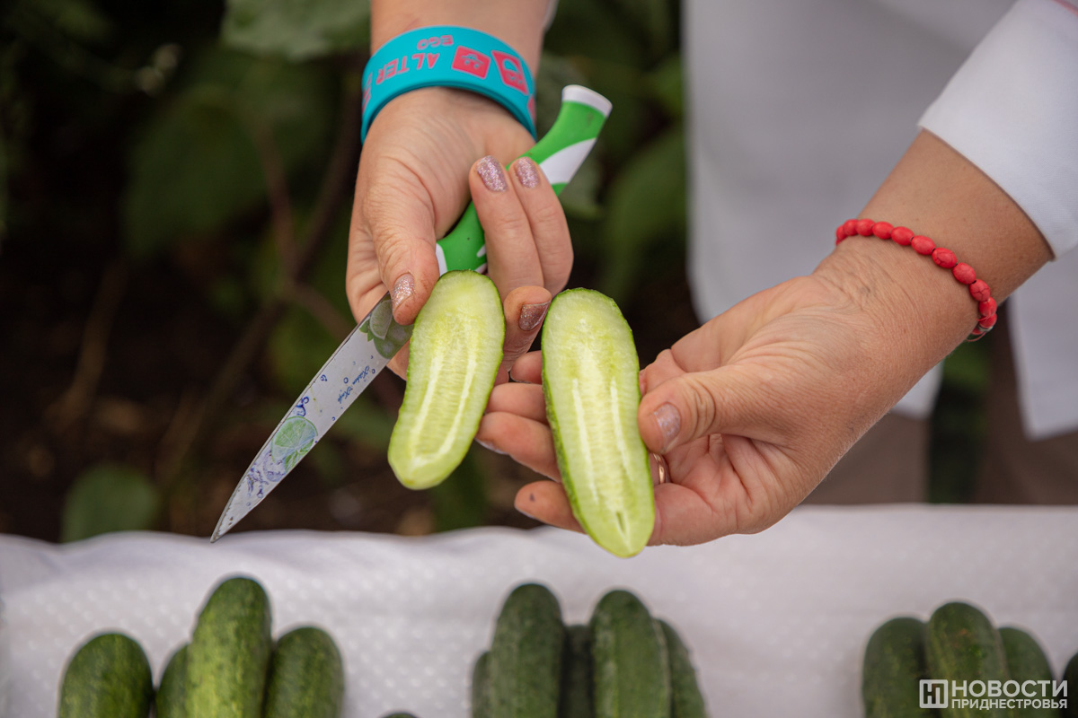 Сегодня в центре внимания были огурцы. Это гибриды, которые пригодны как для плёночных теплиц, так и для открытого грунта. Комиссии показали лучшие из них по урожайности и по вкусовым качествам. Всего получилось несколько десятков гибридов. Были как уже районированные (которые по результатам государственного сортоиспытания рекомендованы для возделывания в определенном агроклиматическом регионе), так и новые.