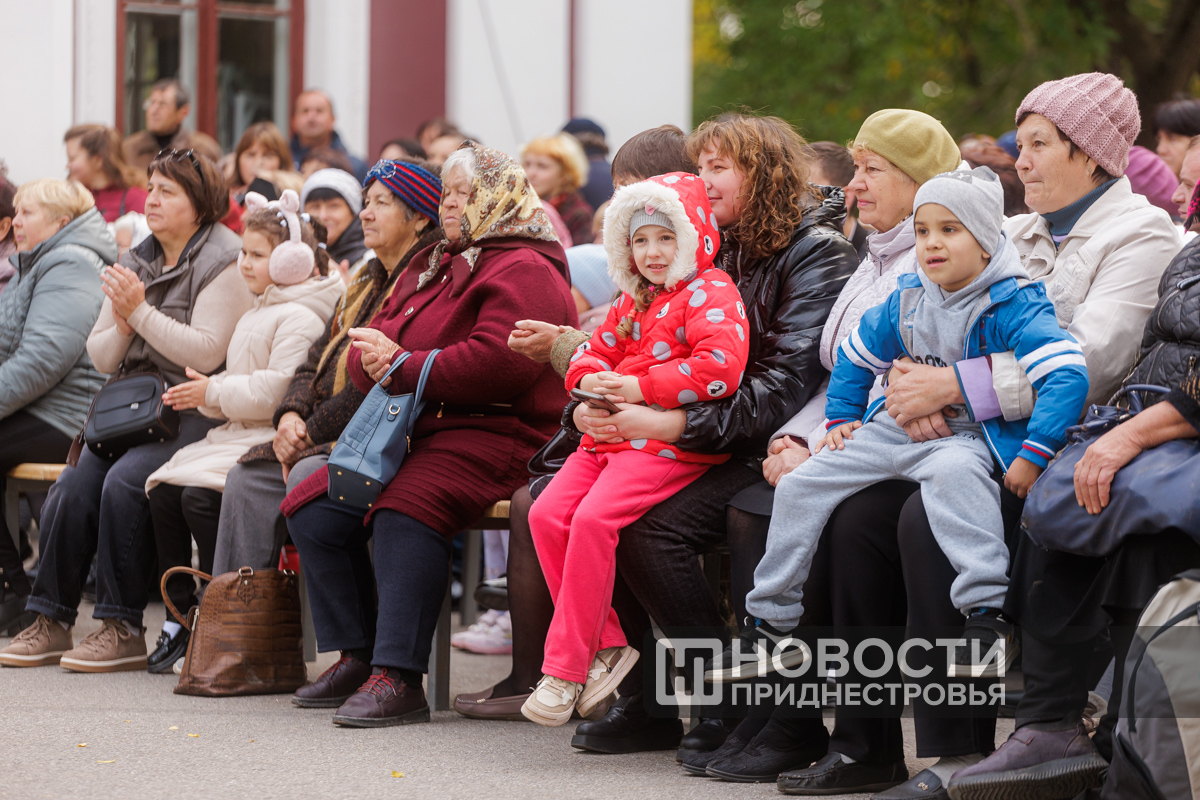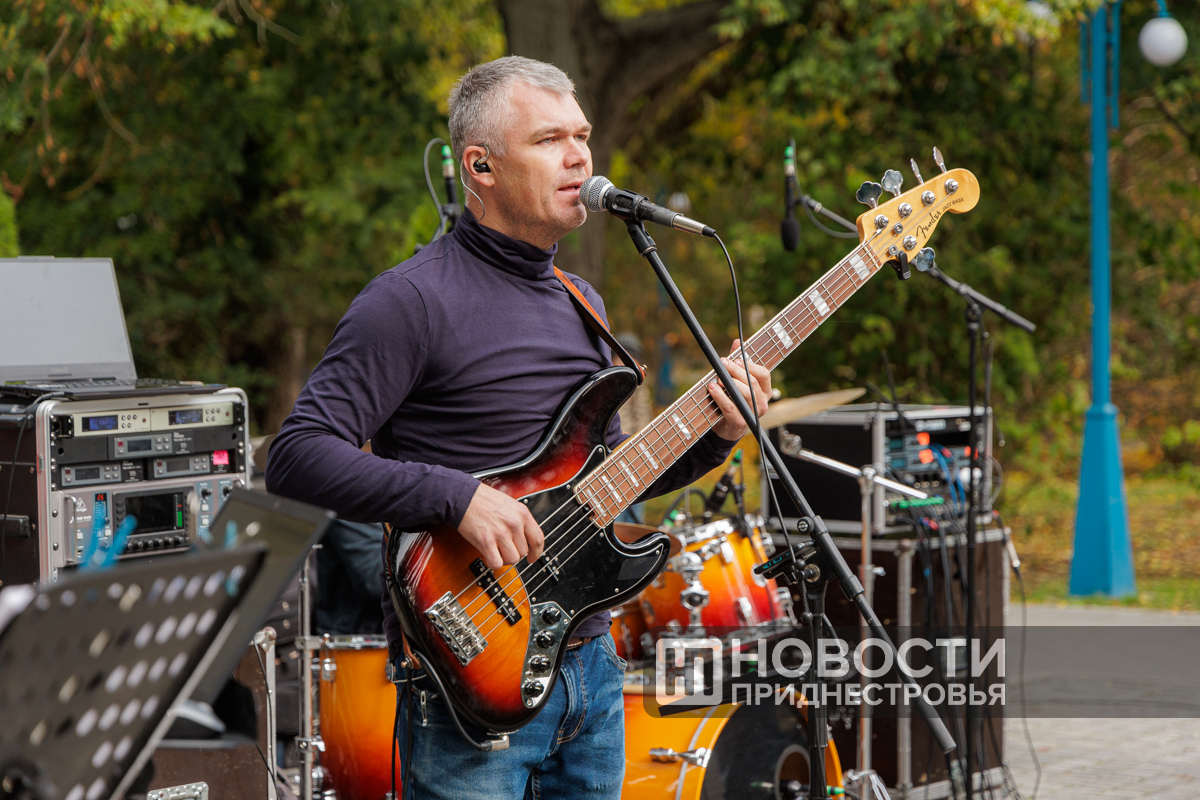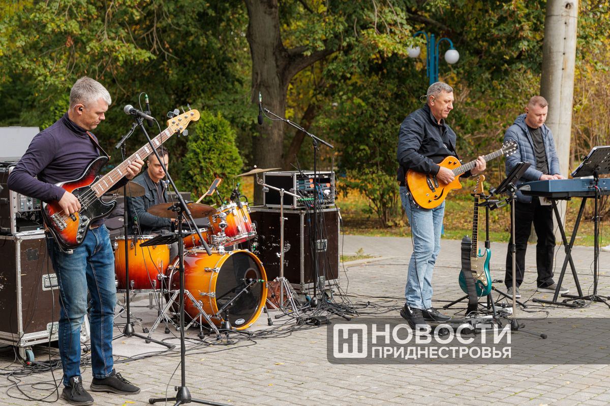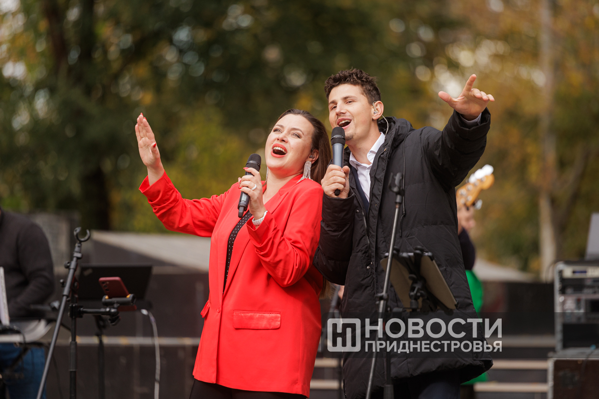 На площадке перед ДК организовали импровизированную сцену. Перед публикой выступили певец Евгений Аврамов и ВИА «Днестр».