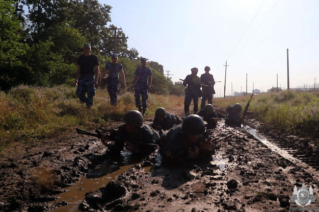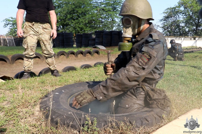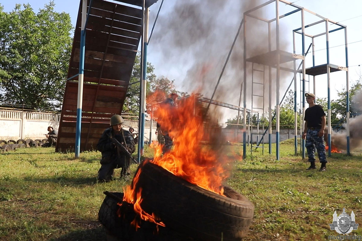 Марш-бросок завершился по месту дислокации подразделения. Уже там бойцов ждало следующее испытание – преодоление огненно-штурмовой полосы. Горящие покрышки, чёрный едкий дым создавали не только антураж, но и проблемы с дыханием. Правоохранители преодолели лабиринты, подземные ходы, мосты и стены, проползли под колючей проволокой, перешли канатные дороги. Не забыли при этом прикрывать линию фронта и тыл.