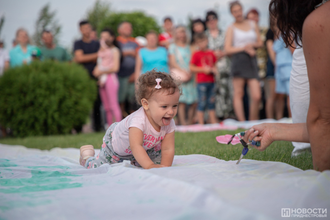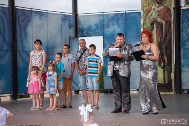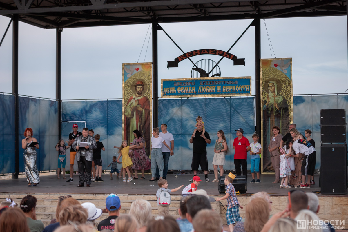 На сцене чествовали золотых юбиляров супружеской жизни, многодетные семьи, молодые пары. Это бендерчане и жители близлежащих сёл, которые вносят вклад в развитие города. Всем им вручили цветы и подарки от госадминистрации.