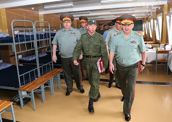 Шойгу осмотрел объекты военной инфраструктуры и социально-бытового назначения, расквартированного здесь воинского соединения. Особое внимание глава военного ведомства уделил условиям проживания военнослужащих и строящейся парковой зоне, предназначенной для размещения имеющейся и поступающей на вооружение новой военной техники.