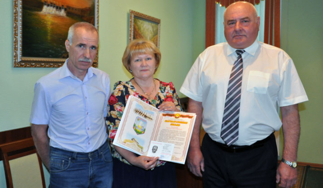 Дубоссары, 9 июня. /ИА «Новости Приднестровья"/. Глава дубоссарской госадминистрации Сергей Михайлов в канун юбилея уроженца Дубоссар Сергея Рыжакова передал его сестре Светлане Мошняге нагрудный знак «За оборону Приднестровья».