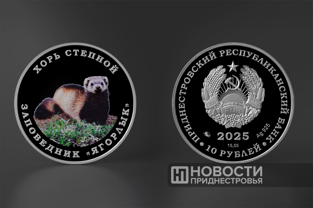 Тирасполь, 23 января. /Новости Приднестровья/. Приднестровский республиканский банк выпустил новые памятные серебряные монеты в серии «Заповедник “Ягорлык”». Это 10-рублевые денежные знаки «Хорь степной». На реверсе монеты можно увидеть цветное изображение степного хоря в траве.