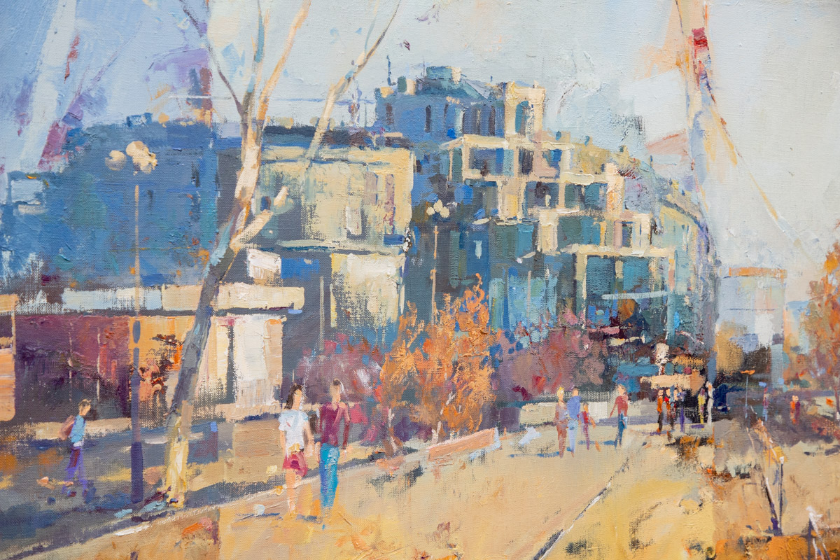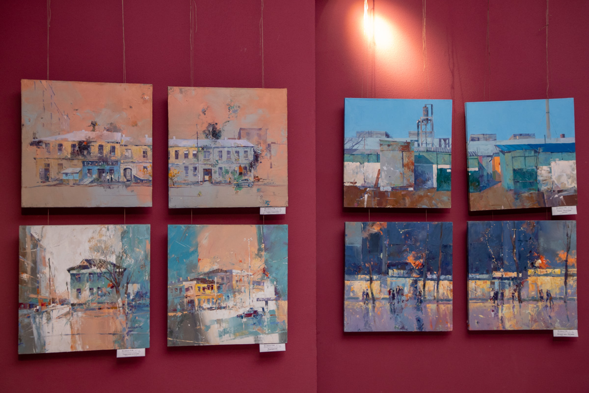В первом зале можно увидеть работы, посвященные Тирасполю, которые были написаны в течение последних двух лет. К ним относится диптих, на котором запечатлён своеобразный симбиоз нового и старого: строящийся многоэтажный дом, с которым соседствуют здания советской эпохи. Эта картина заняла второе место на конкурсе художников-профессионалов, посвящённом 30-летию образования Приднестровской Молдавской Республики.