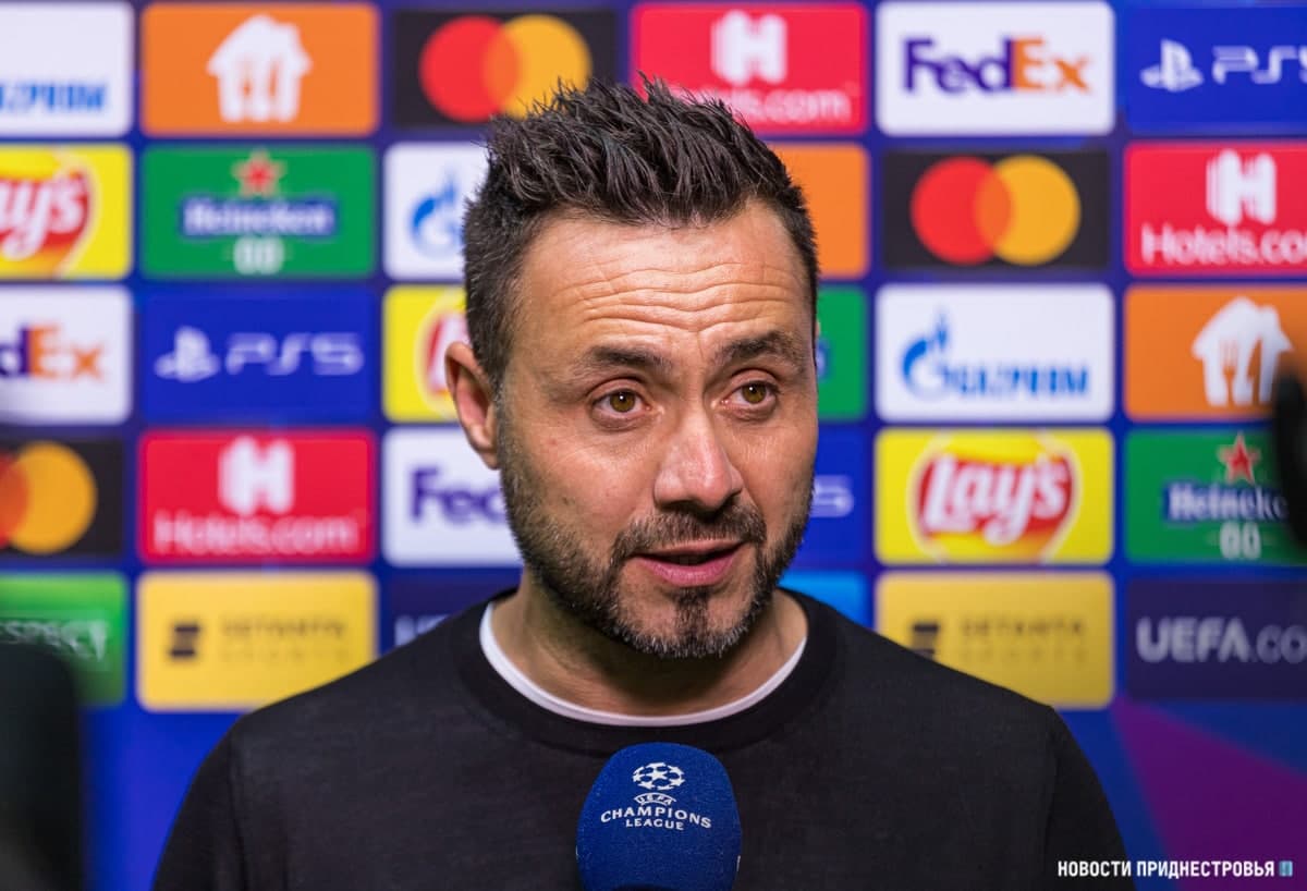 Тирасполь, 6 декабря. /Новости Приднестровья/. Перед ответным матчем с футбольным клубом «Шериф» в рамках группового этапа Лиги чемпионов высказался главный тренер «Шахтёра» Роберто де Дзерби. По его словам, домашняя игра с тираспольчанами простой не будет. Для наглядности итальянец вспомнил своё поражение в первом туре.