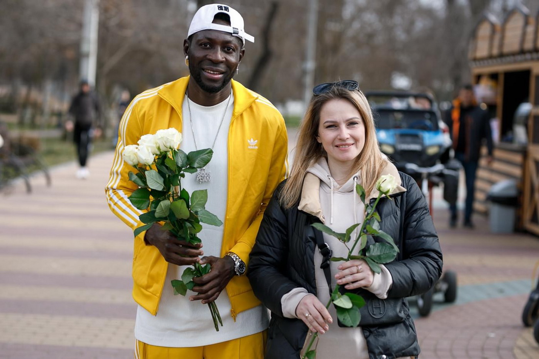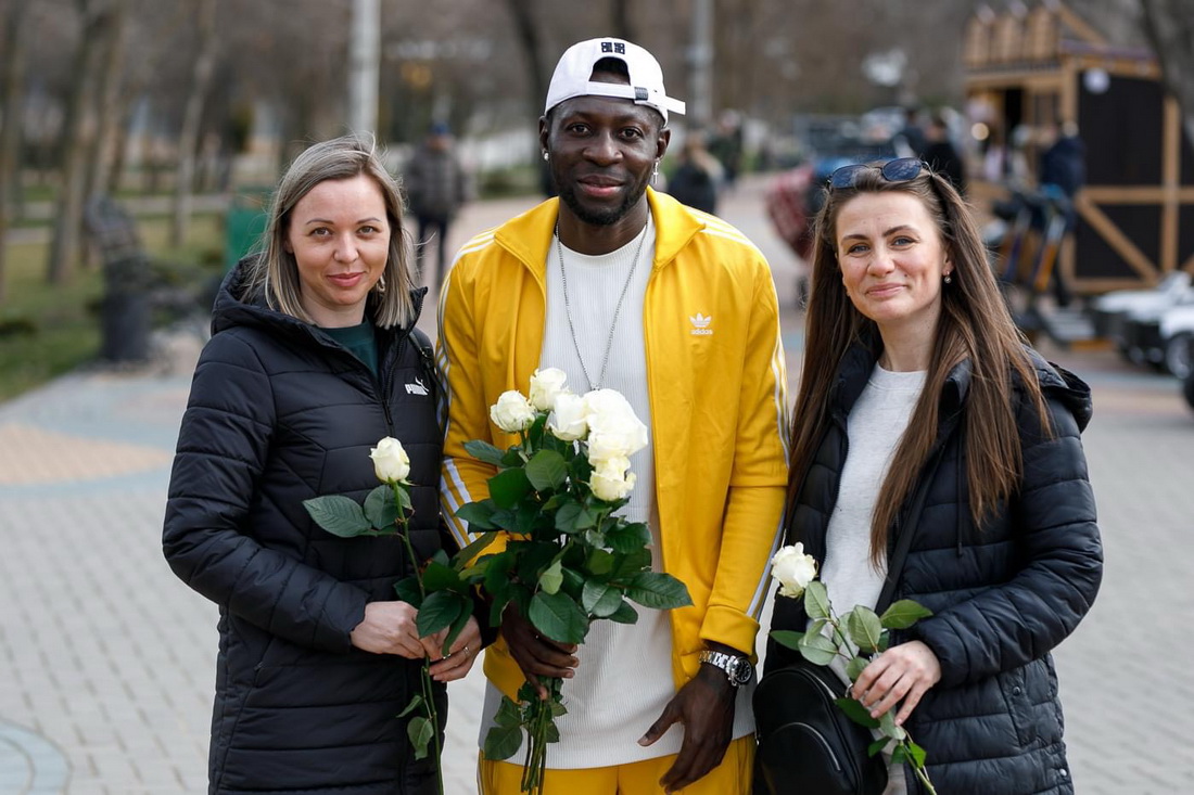 Бенджамин Балима дарил тираспольчанкам цветы