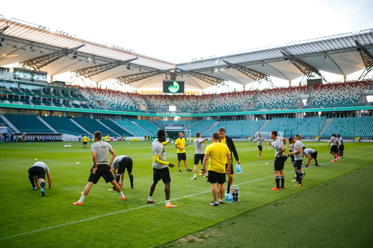 Сейчас футболисты готовятся выйти на стадион Войска Польского. С варшавским полем тираспольчане познакомились ещё вчера — прошла открытая тренировка и предматчевая пресс-конференция.