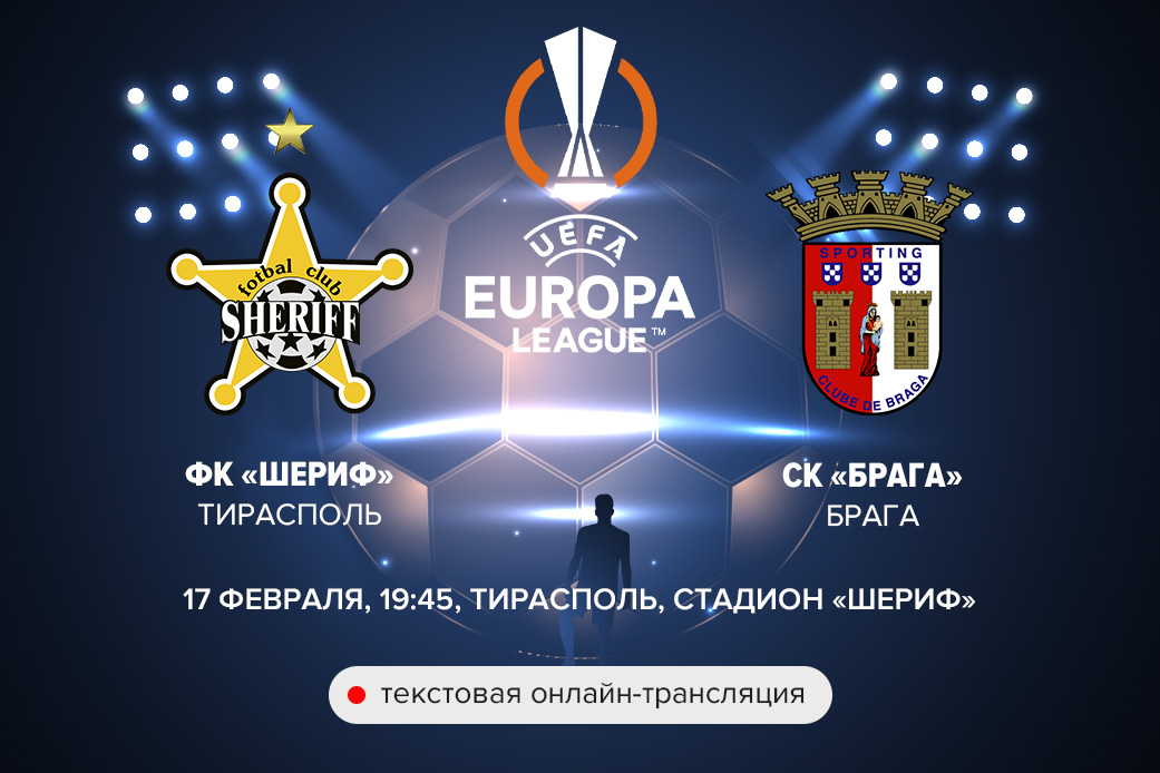 Добрый вечер, дорогие друзья! К нам в Тирасполь возвращается большой европейский футбол! «Шериф» сегодня проведет первый стыковой матч в борьбе за путевку в 1/8 финала Лиги Европы с португальской «Брагой». Игра пройдет на главной арене спорткомплекса «Шериф». Мы будем вести для вас текстовую онлайн-трансляцию этой встречи.