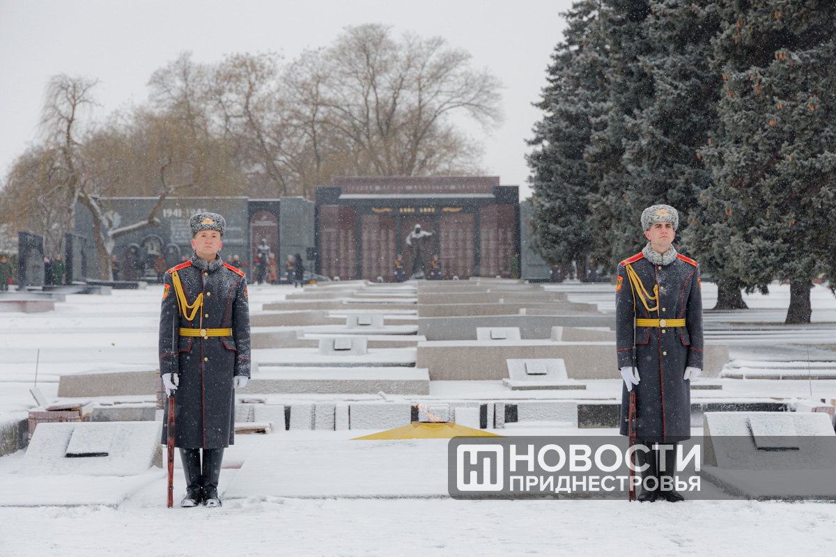 Память погибших защитников почтили Минутой молчания и возложили живые цветы к памятникам «Сынам Отечества – воинам Афганской войны 1979-1989 гг.», «Скорбящей Матери» и «Защитник Приднестровья».