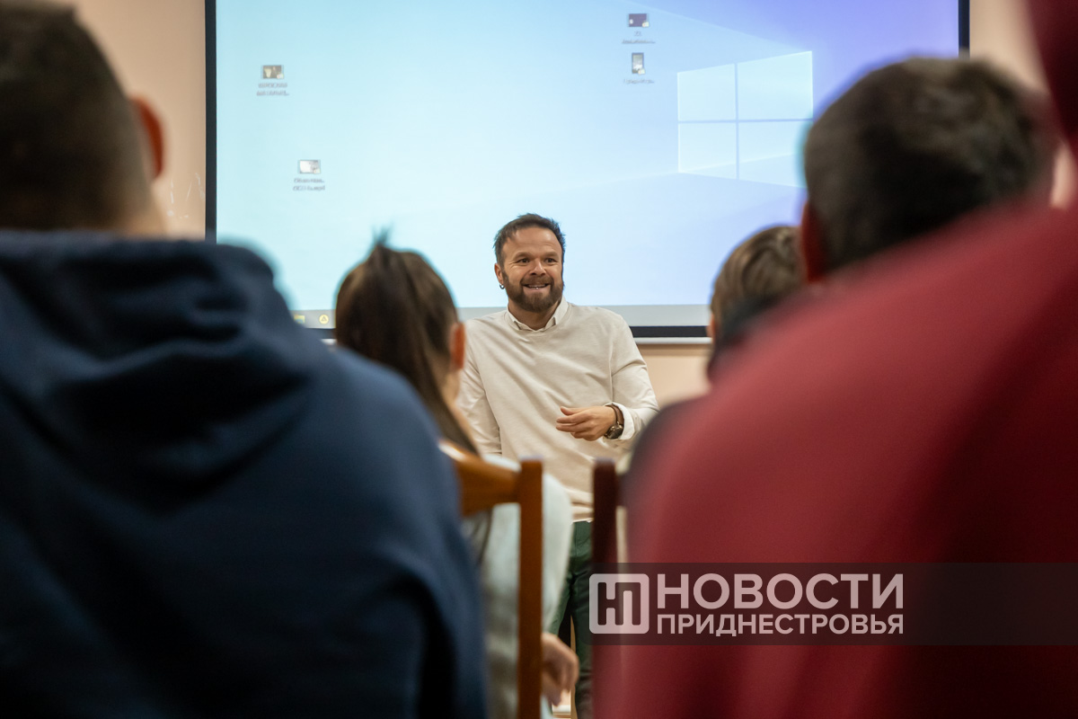 Первым спикером стал ведущий телевизионной программы «В путь! По-новому» на Первом Приднестровском. Он рассказал о съёмках шоу, радиоэфирах, актёрской и музыкальной карьере. Опытный журналист посоветовал школьникам и студентам уже сейчас начинать развивать свой личный бренд в социальных сетях.