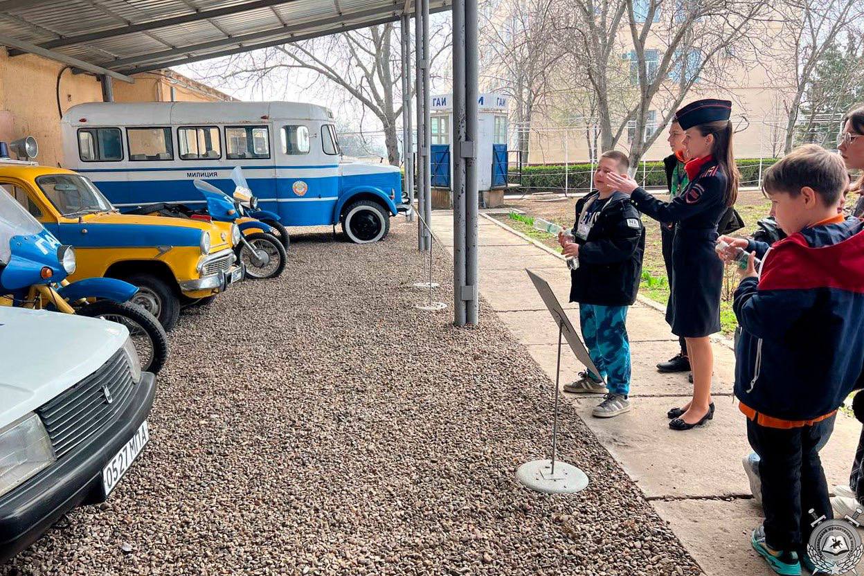 Завершились познавательные два часа в музее техники, который расположился на территории ТЮИ. Школьников не только познакомили с милицейским транспортом, но и разрешили сделать фото на память.