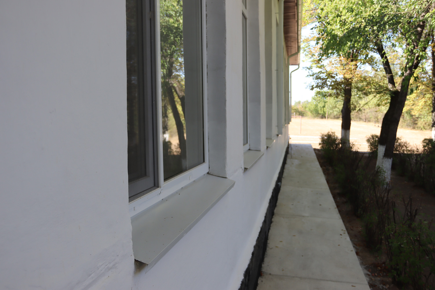 В школе завершены работы по установке новой водосточной системы и обустройству отмостки вокруг здания, что защищает фундамент от атмосферных осадков и увеличивает срок службы здания.