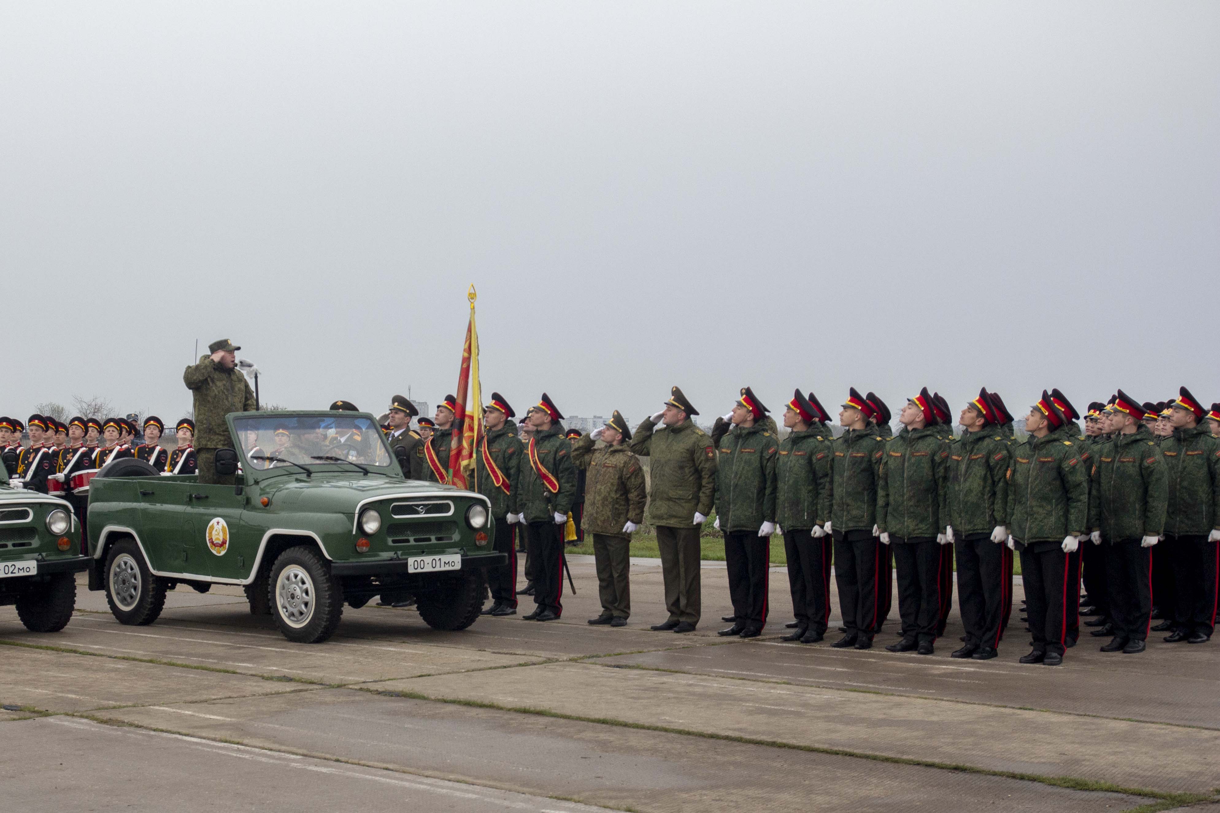 Подразделения силовых министерств республики, военнослужащие Оперативной группы российских войск, курсанты, суворовцы и кадеты, соблюдая равнение в колоннах и шеренгах, прошли торжественным маршем.
