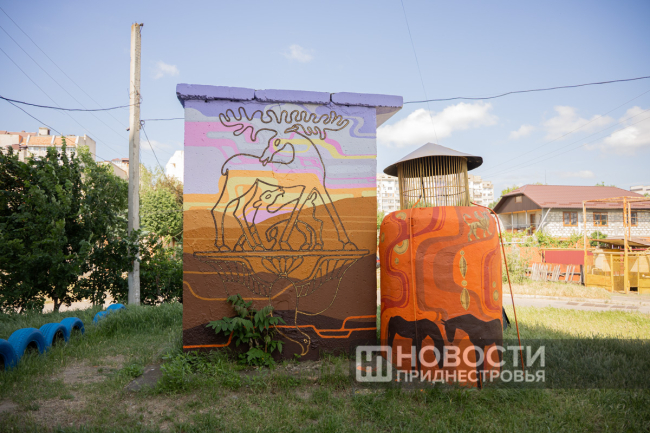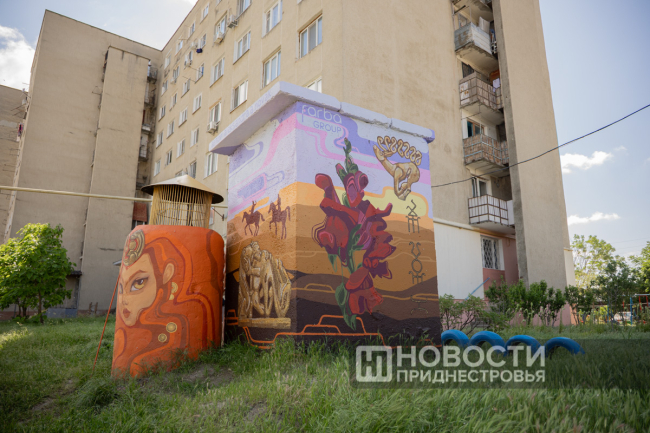 Тирасполь, 4 июня. /Новости Приднестровья/. В одном из дворов Тирасполя появился новый мурал - под названием «Скифское золото», созданный приднестровской художницей Александрой Новак. Она уже не в первый раз превращает безликие технические постройки в стрит-арт-объекты.