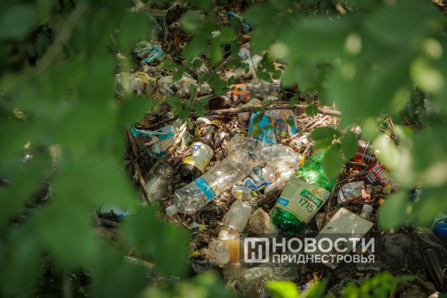 Несмотря на все усилия активистов, регулярные уборки не спасают сквер в Тирасполе от беспорядка. Особенно это заметно за оградой, где природа тонет в пластике и стекле.