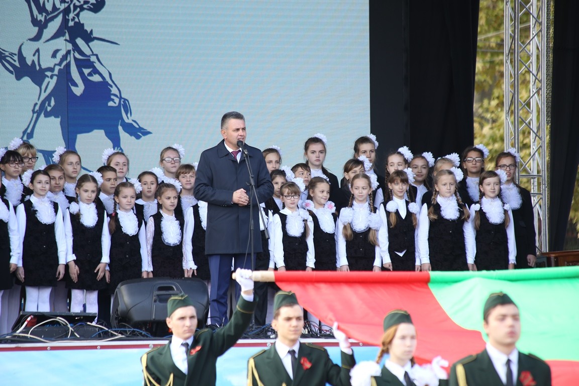 Приветствуя тираспольчан и гостей праздника, Президент Вадим Красносельский подчеркнул, что сама идея основания города Тирасполя заключалась в построении форпоста Российской империи на южных ее рубежах, и вначале он строился как крепость русской императорской армии.