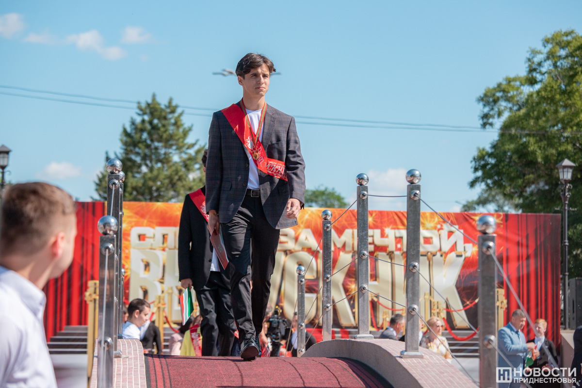 Тирасполь, 15 июня. /Новости Приднестровья/. Сегодня для выпускников, родителей и педагогов столичных школ, гимназий и лицеев торжественный и одновременно волнительный день. Красивые и счастливые, для участия в церемонии награждения золотых и серебряных медалистов, они собрались у фонтанного комплекса в центре Тирасполя.