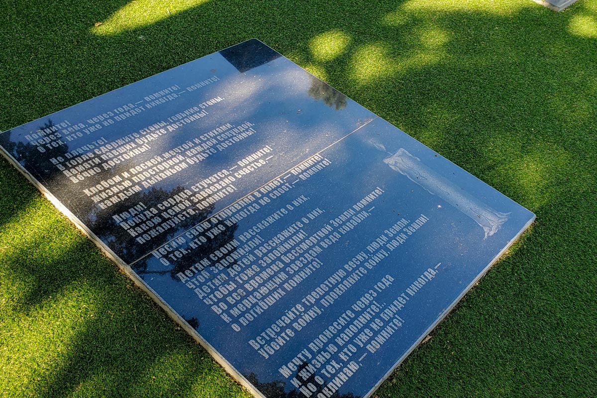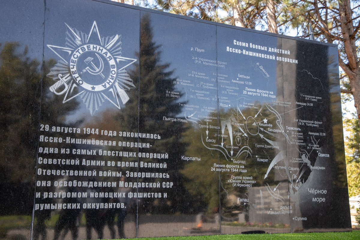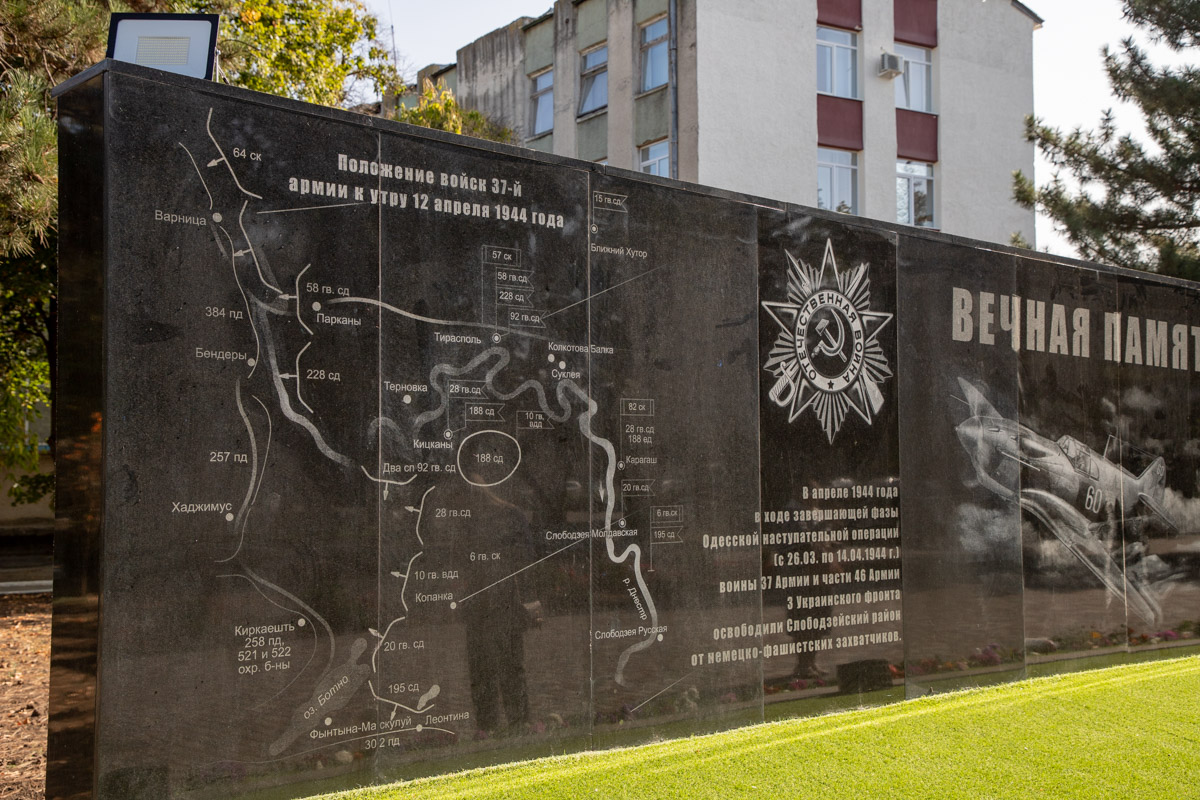 На мраморных плитах изображены сцены боев времён Великой Отечественной войны. На Мемориале Славы увековечены имена более 800 воинов, которые погибли при освобождении Слободзейского района от немецко-фашистской оккупации. На плитах и схема Ясско-Кишинёвской операции. Она началась с Кицканского плацдарма и завершилась освобождением Молдавской ССР.