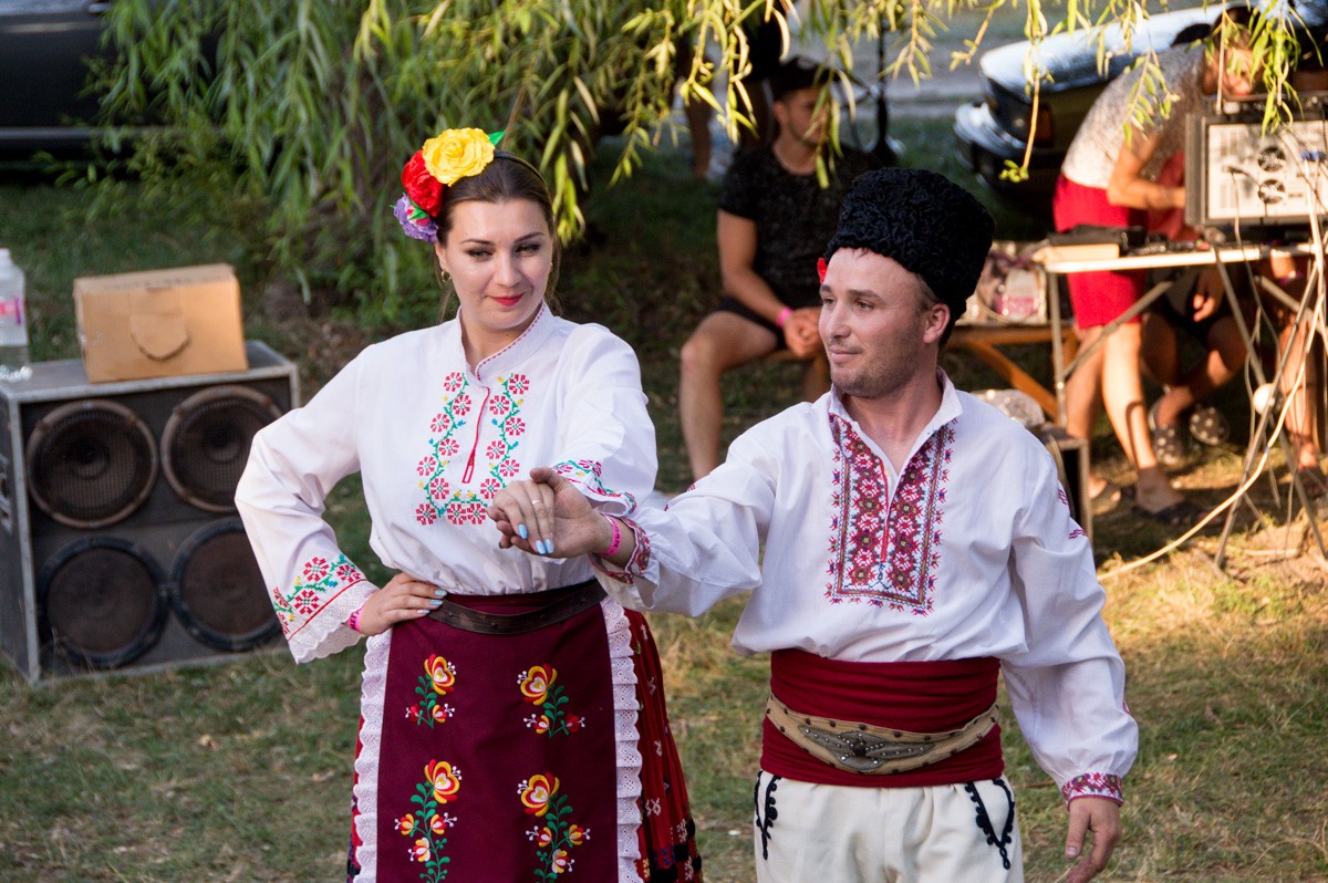 На открытии творческой программы молодые люди выступали с собственными шутками – Stand-up по-болгарски. Языковой барьер не помешал нам смеяться и веселиться вместе со всеми. На языке танца всё становилось понятнее: девушки в ярких сарафанах, звеня монетами и бусами на головном уборе, шли под руку с парнями, также одетыми в национальные костюмы. Музыкальный фольклор болгар во много отличается от приднестровского. В песнях преобладают звуки волынки и барабана.