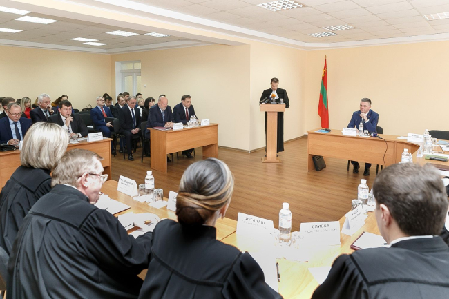Тирасполь, 2 февраля. /Новости Приднестровья/. Сегодня на Пленуме Арбитражного суда подвели итоги работы за 2017 год. В работе заседания приняли участие глава государства Вадим Красносельский, руководство Верховного Совета и Правительства, руководители Верховного и Конституционного судов, Прокурор ПМР, руководители ГТК и ЦИК.