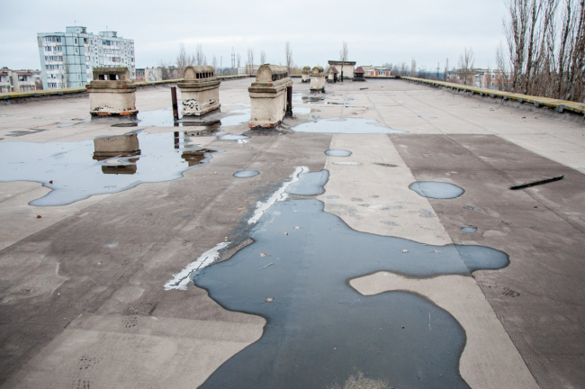 И несмотря на большое количество проблемных зон, в апогее – кровля. На протяжении 20 лет зоны повреждения покрытий распространяются всё больше, а возможности их полностью изолировать не представляется. В силах учебного заведения локальный ремонт кровли, способный лишь «латать» небольшие участки крыши.