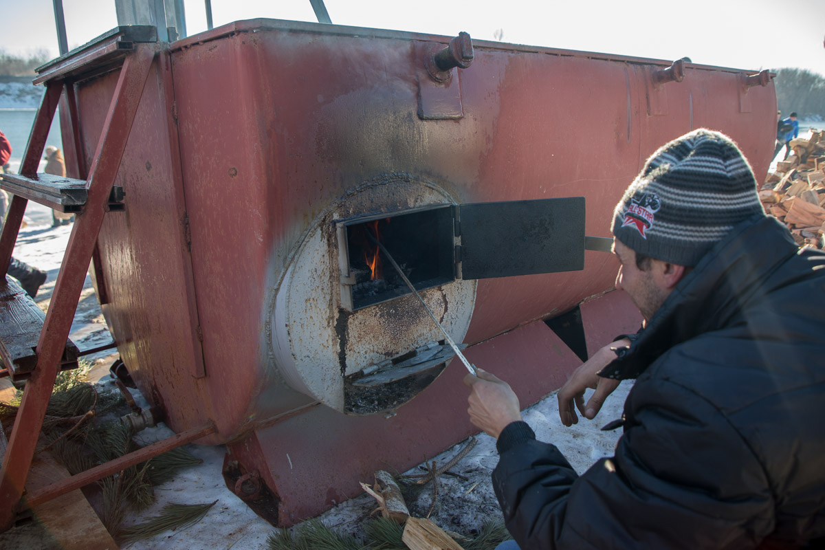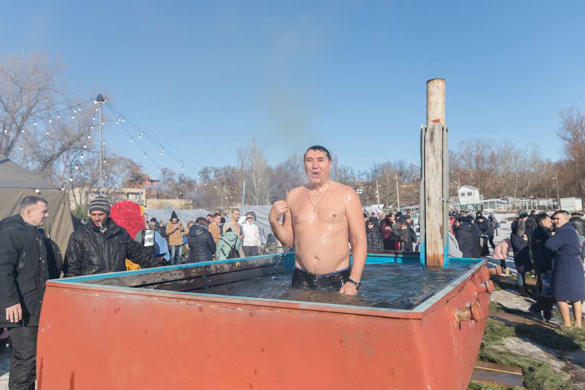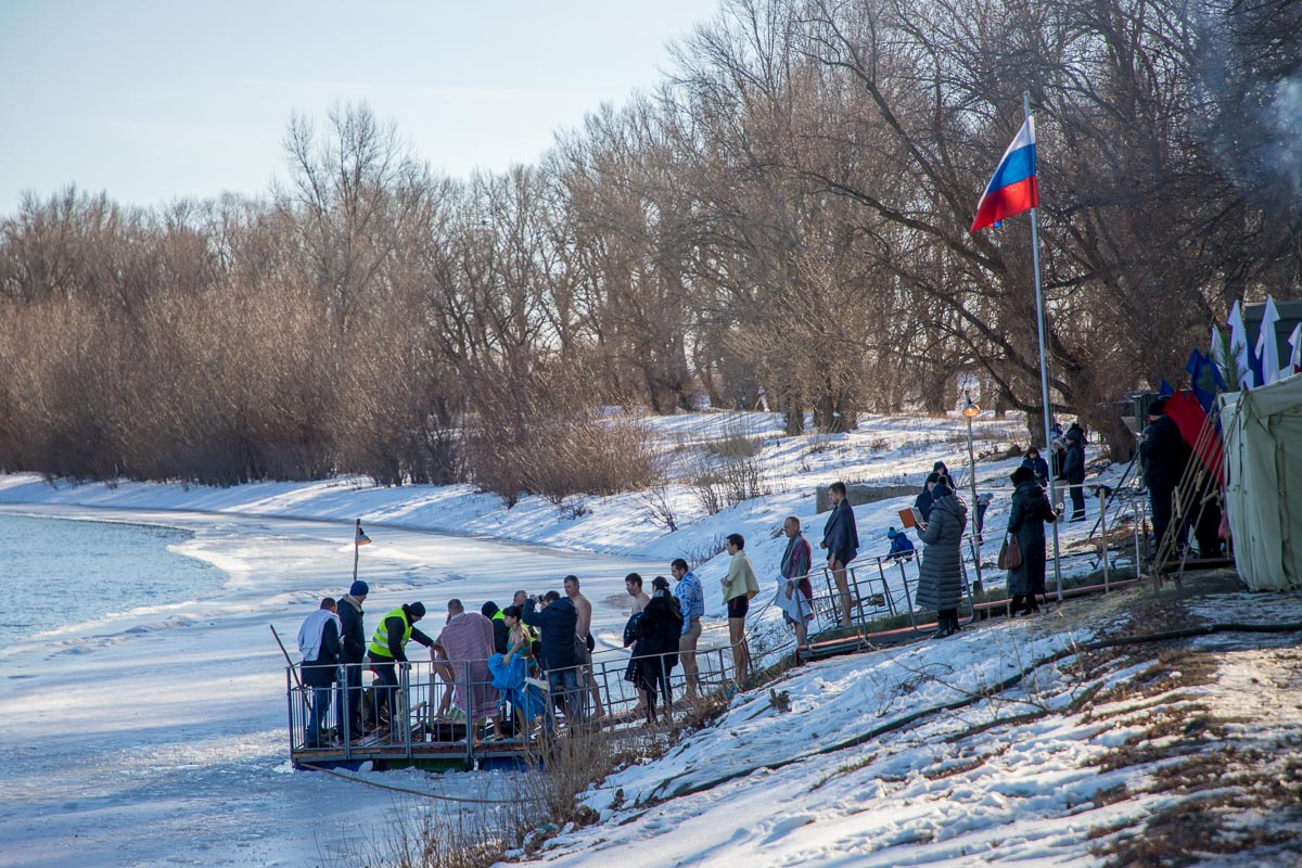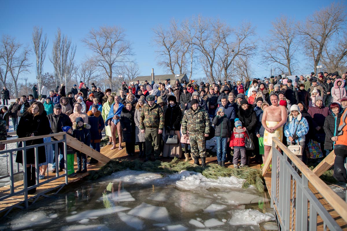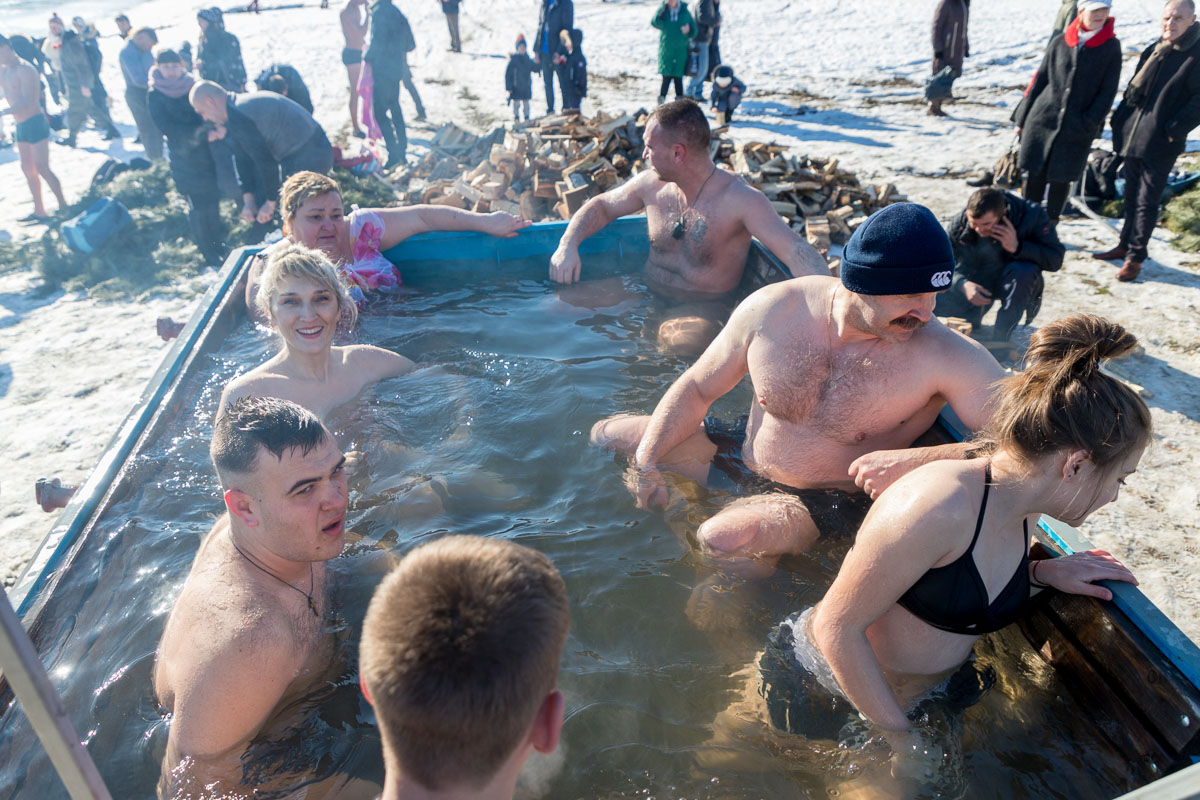 Сотни людей разных возрастов пришли на Днестр, чтобы троекратно окунуться и прочесть молитву. Здесь для верующих были организованы отапливаемые раздевалки, баня, кухня с горячим чаем и выпечкой, чан с горячей водой.
