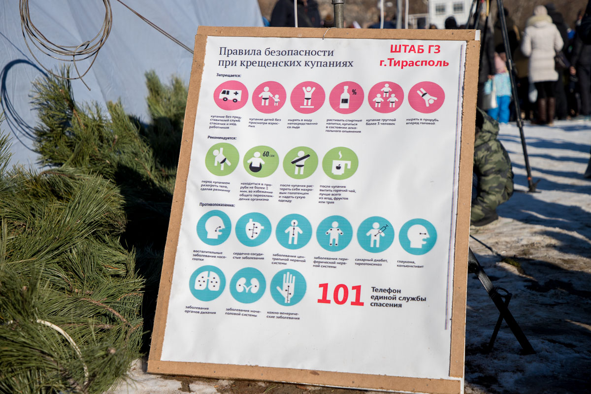 «Всё было готово – купель, палатки – ещё накануне вечером. Люди стали приходить с 12 часов ночи и окунаться. Сегодня дежурит скорая помощь, спасатели следят за безопасностью в ходе крещенских купаний. Всё проходит в штатном режиме. Спасатели будут дежурить здесь до обеда 20 января», - отметил начальник отдела по делам гражданской обороны и чрезвычайным ситуациям г. Тирасполя Виктор Водзинский.