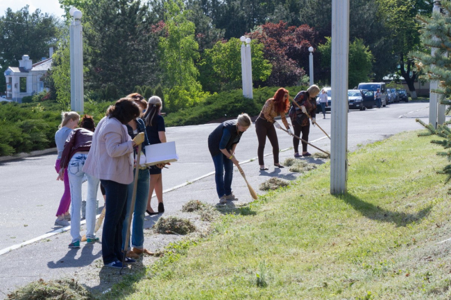Во время проведения субботника были побелены бордюры и деревья, собран мусор, скошена трава. По завершению работ Глава Правительства поблагодарил всех сотрудников за слаженную и качественную работу.