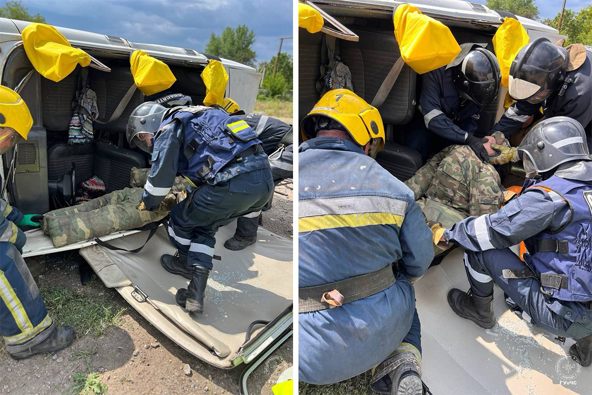 За действиями профессионалов с интересом наблюдали около 70 кадет из Республиканского кадетского корпуса. После основного мероприятия ребятам показали пожарную спецтехнику, дали возможность включить сирены, посидеть в кабинах боевых машин, прокатиться на квадроциклах и даже попробовать себя в роли спасателей с настоящим гидравлическим инструментом.