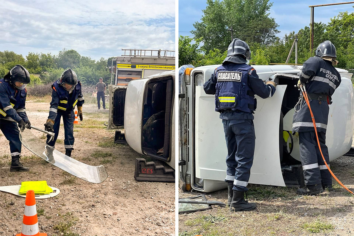 Тирасполь, 22 мая. /Новости Приднестровья/. На базе аварийно-спасательного подразделения прошли показательные учения. По легенде произошло ДТП: перевернулся автомобиль «Москвич», разлилось топливо, произошло возгорание. Внутри машины находился условный пострадавший.