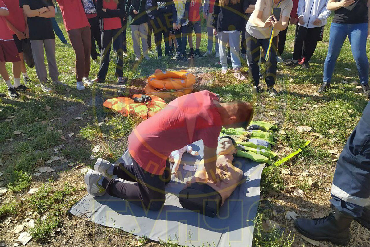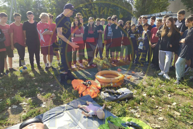 На школьном дворе спасатели провели мастер-класс по оказанию помощи утопающему. Занятие началось с небольшого теоретического блока, далее последовала практика.