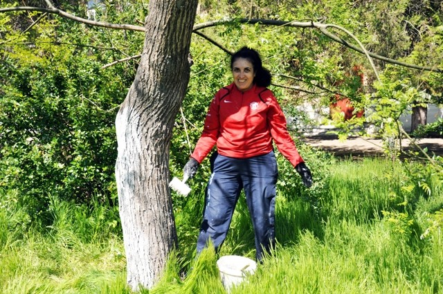 На территории специального учебного заведения были побелены деревья, приведены в порядок клумбы, очищены от мусора и травы площадки, покошена трава