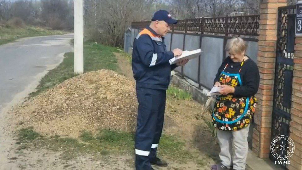 Сотрудники ГУпЧС вручают памятки жителям частного сектора с номерами экстренных служб