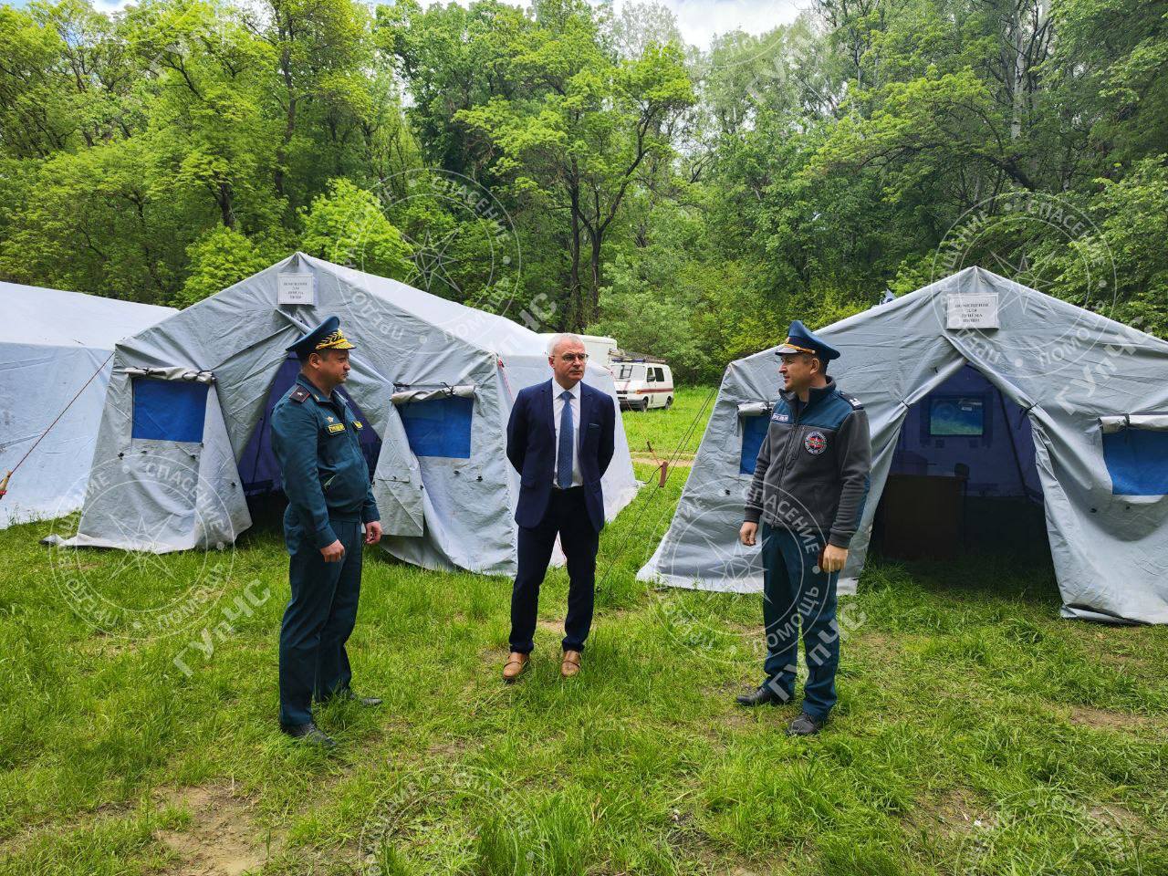 В полевом лагере спасателей побывал министр внутренних дел ПМР Виталий Нягу. Он ознакомился с целями учений и оснащением городка.
