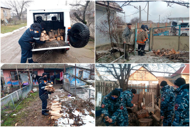 На сайте МВД ПМР говорится, что в Дубоссарах сотрудники аварийно-спасательного подразделения доставили порядка 2 кубометров дров. Они предназначены для трёх семей.