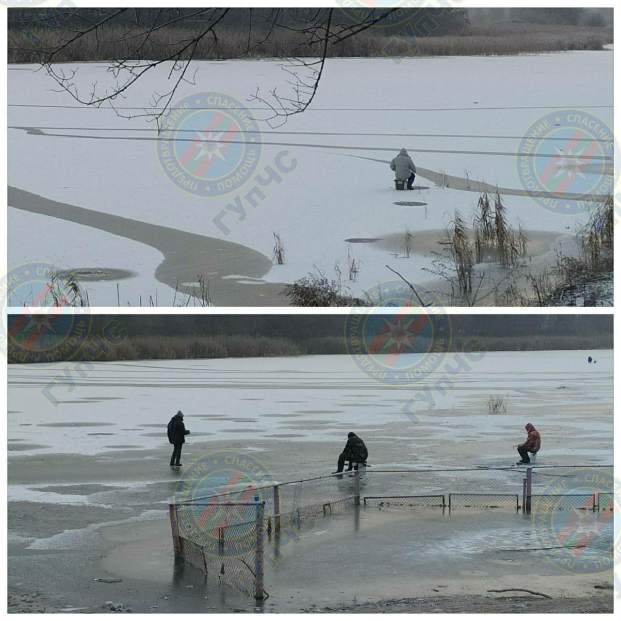 Некоторые думают, что этот лёд прочный. Так, в с. Шмалены Рыбницкого района рыбаки вышли на поверхность озера Комсомольского. Сотрудники аварийно-спасательного отряда предупредили, что это может стоить им жизни.