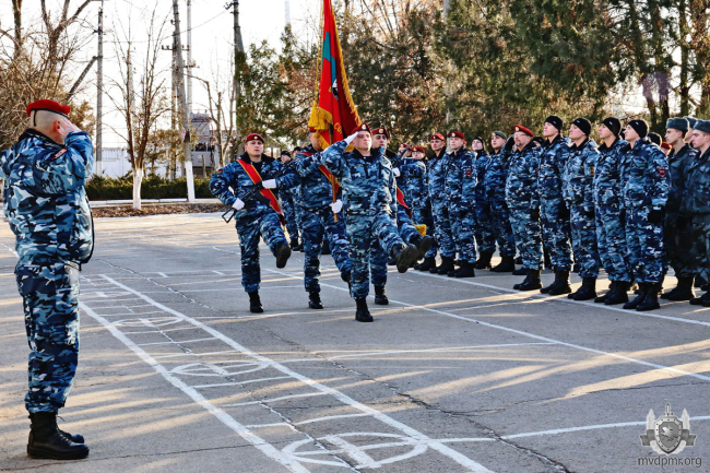 05 Янв., 2019, 20:20Тирасполь, 5 января. /Новости Приднестровья/. Личный состав Специальной моторизованной войсковой части под командованием подполковника милиции Дениса Георгицы отпраздновал 23-ю годовщину со дня образования. Торжественное построение состоялось по месту дислокации. Поздравить военнослужащих прибыли гости, в числе которых и первый заместитель министра внутренних дел ПМР.