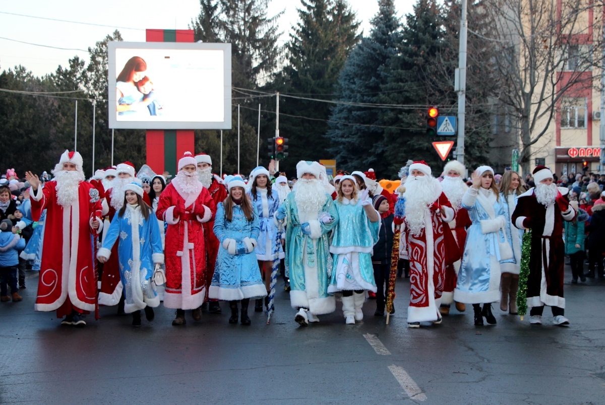 По центральным улицам Рыбницы в этот день прошёл парад Дедов Морозов, Снегурочек и других сказочных персонажей. После этого на главной городской площади состоялось театрализованное представление. Рыбничане пели песни, водили хороводы и участвовали в конкурсах.