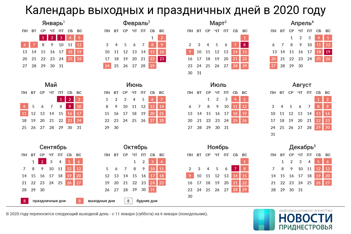 Тирасполь, 5 июля. /Новости Приднестровья/. Министерство по социальной защите и труду утвердило и опубликовало производственный календарь и плановое количество рабочего времени на 2020 год при пятидневной и шестидневной рабочей неделе.