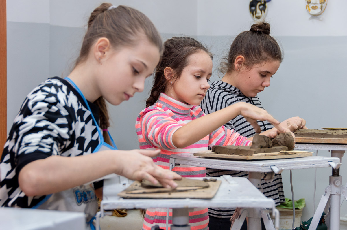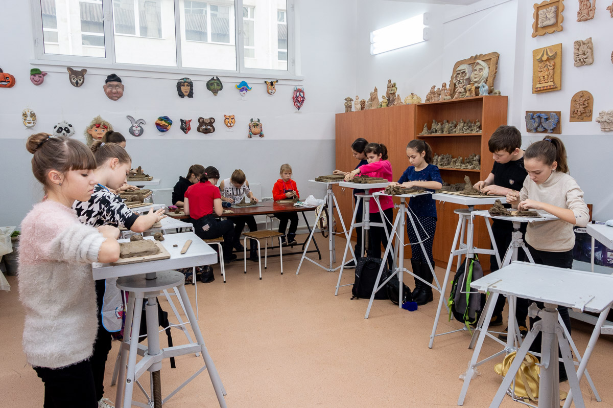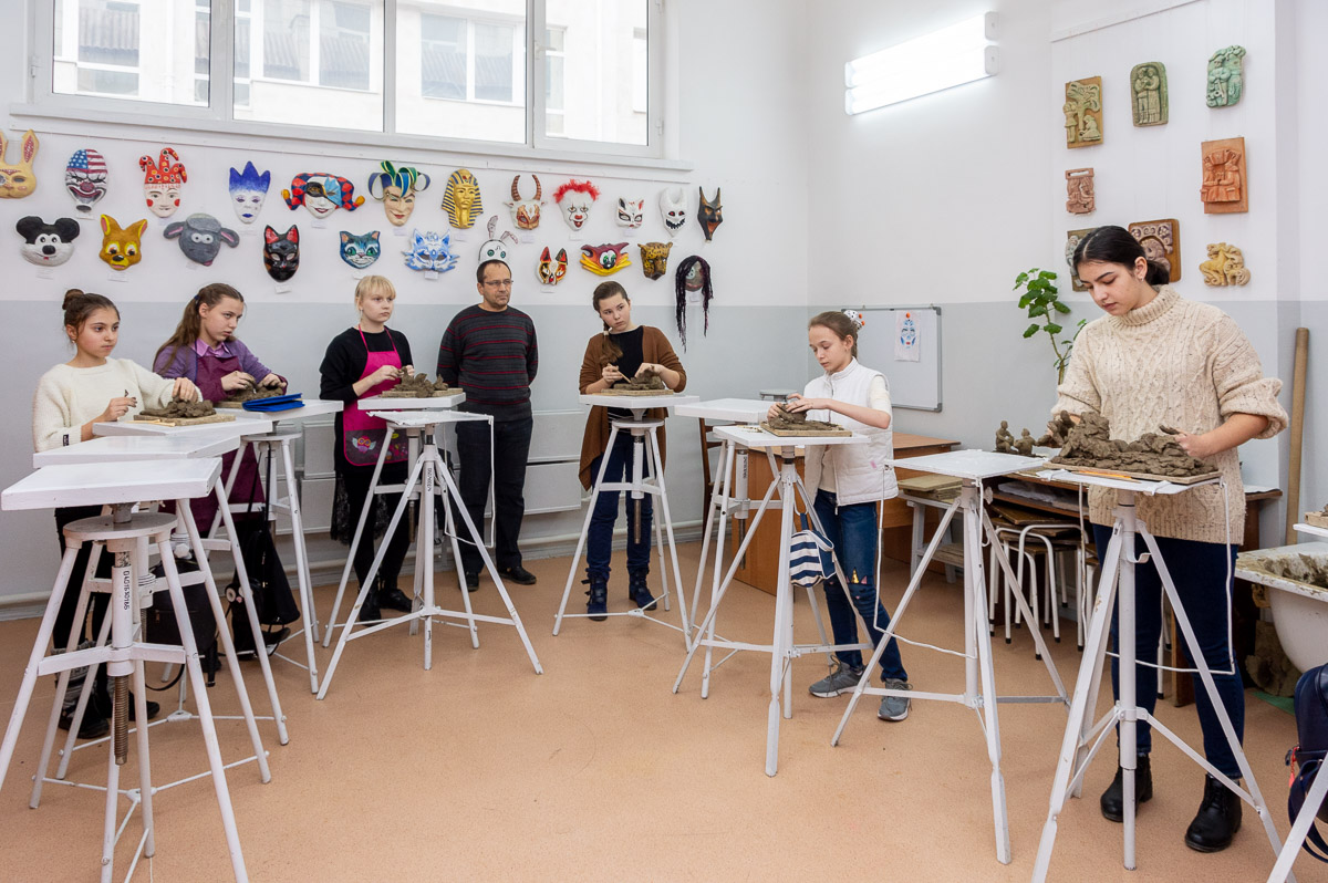 Сегодня одни ребята рисовали натюрморт, другие лепили сказочных героев и персонажей из басен. На это им давали по несколько академических уроков в зависимости от сложности задания.