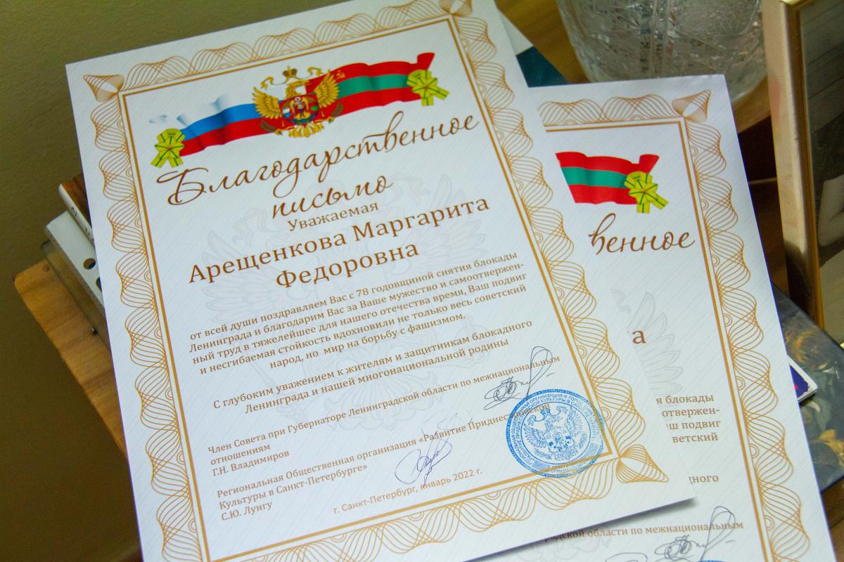 Тирасполь, 27 января. /Новости Приднестровья/. Работники социального отдела столичной государственной администрации в день годовщины снятия блокады Ленинграда персонально поздравили тираспольчан, переживших в детские годы блокаду города на Неве. В этом году к поздравляющим впервые присоединилось РОО «Развитие приднестровской культуры в Санкт-Петербурге», сообщается на сайте столичной госадминистрации.