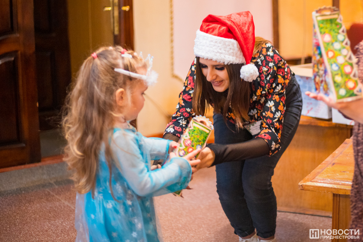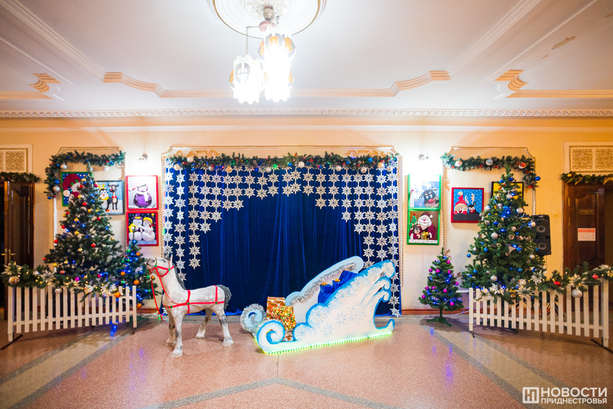 «Постарались в этом году сделать максимально хорошее, красивое оформление не только на фасаде, не только в фойе или в зале, а постарались это всё скомбинировать в один такой новогодний комплекс. Мы хотели создать сказку для детей», - рассказал и.о. директора Дома народных традиций и ремесел г. Тирасполя Владимир Сырги.