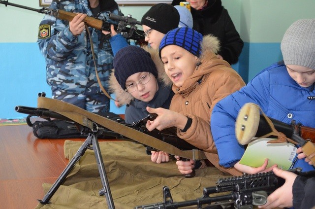 Сотрудники подразделения познакомили ребят с устройством находящегося на вооружении части огнестрельного оружия, дали примерить бронежилеты и защитные шлемы. Почти целый час дети провели на альпинистской стенке, под руководством инструктора штурмовали высоту. Затем забрались в легендарный танк Т-34, который сражался с фашистами в Великую Отечественную, был поднят со дна реки и восстановлен. А современная бронемашина БРДМ-2 прокатила школьников по расположению части.