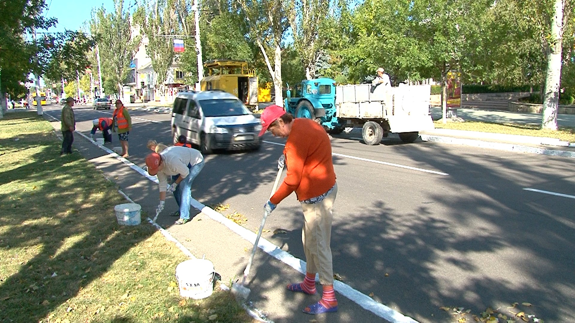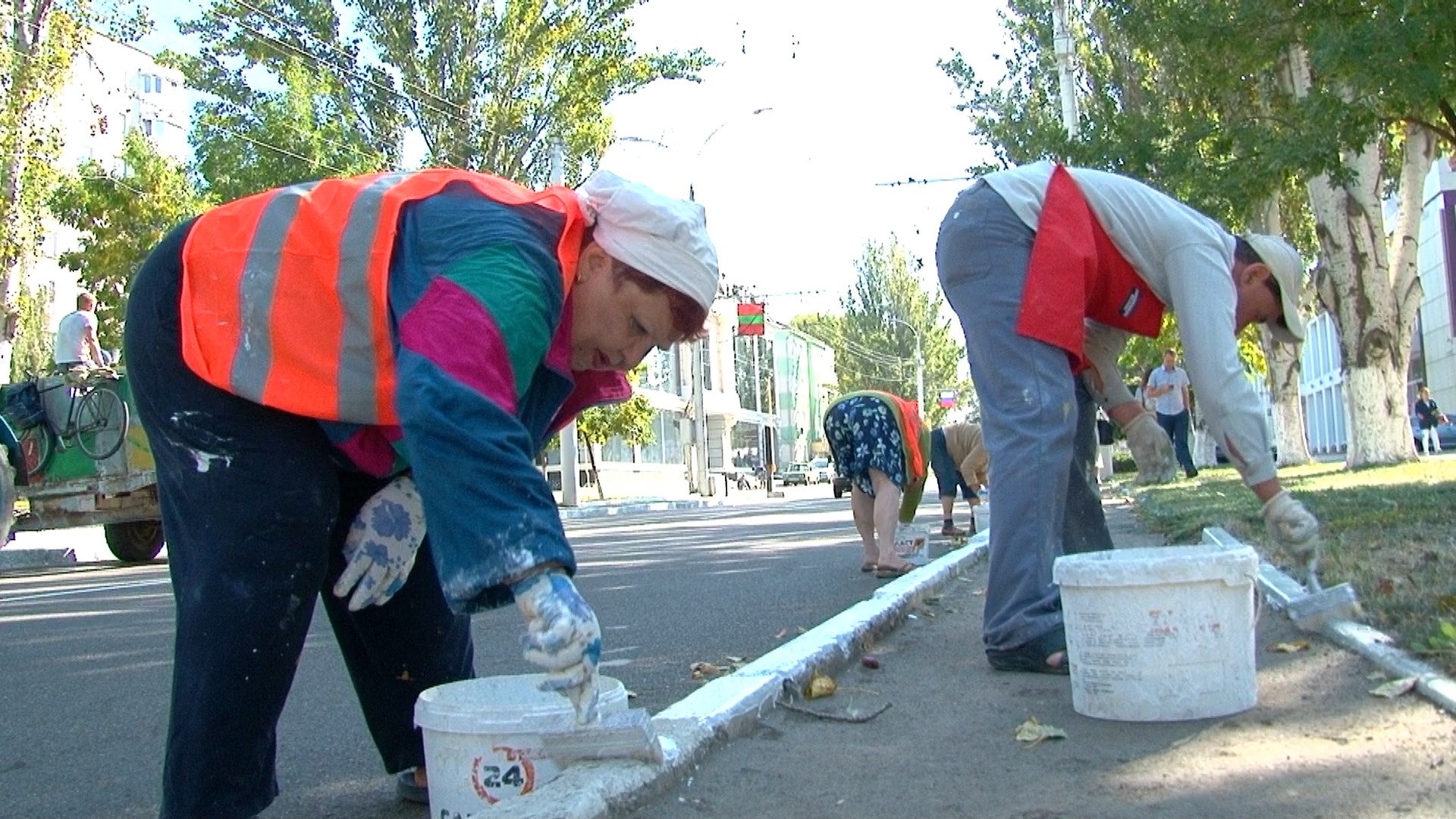 На многих улицах Тирасполя уже отбелены бордюры, выполнена разметка на дорогах, убираются листья и мусор с тротуаров