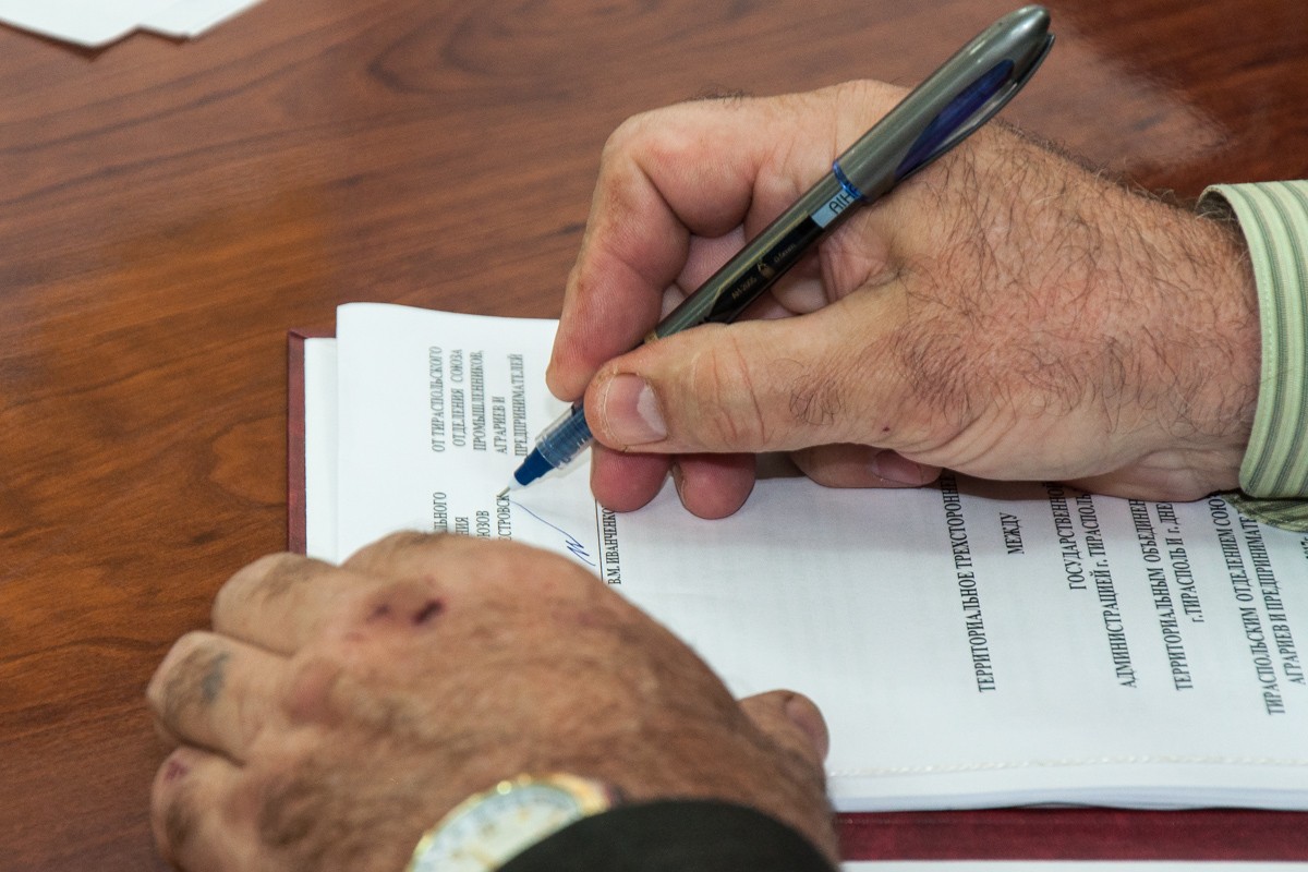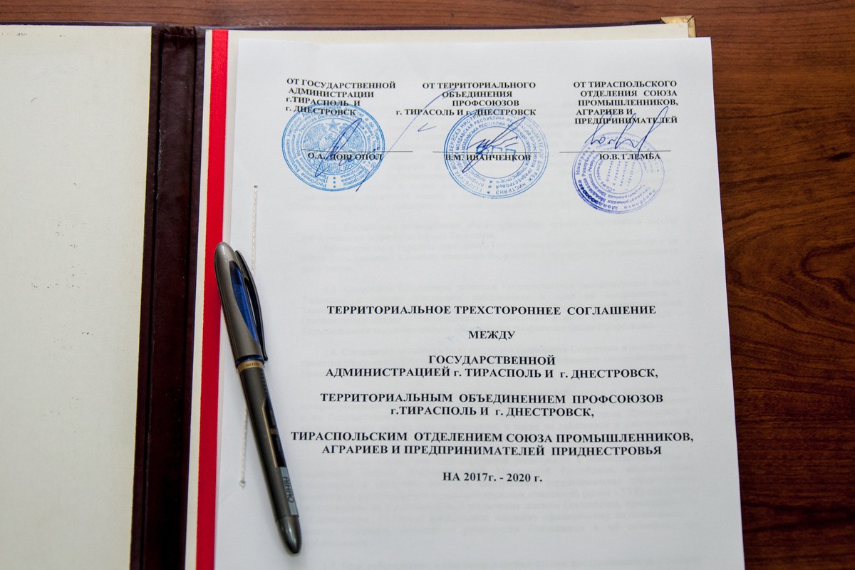 Тирасполь, 27 марта. /Новости Приднестровья/. В столичной госадминистрации сегодня подписали соглашение о сотрудничестве с представителями профсоюзов и Союза промышленников, аграриев и предпринимателей. Как отметил, визируя договор, глава города Олег Довгопол, документальное закрепление поможет активизировать общение этих трёх сторон в решении нужд города и его жителей.