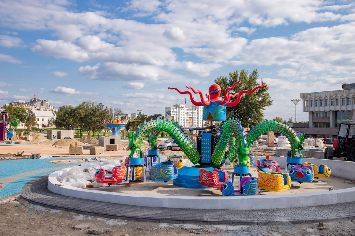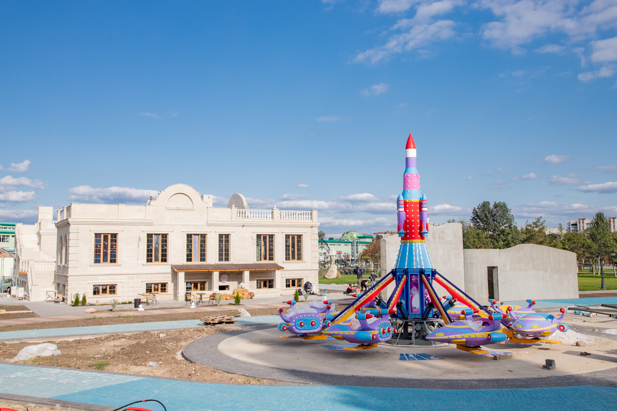 В парке будут вращающиеся карусели, машинки и даже роботы, а в центре – фонтан в виде дракона. Все желающие смогут на пару минут стать водителями экскаватора, он тоже будет в «Чудо-граде». Аттракционы и артобъекты делают в стиле русских сказок.