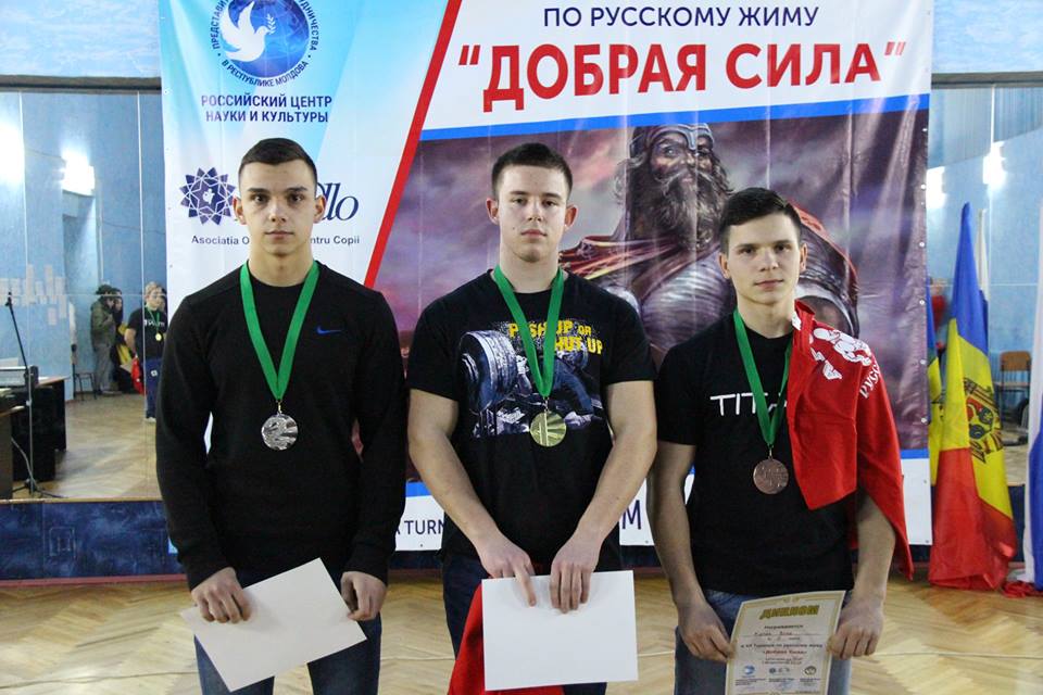 Тирасполь, 24 февраля. /Новости Приднестровья/. Турнир по русскому жиму «Добрая сила» в 7-й раз прошел в Кишиневе. Он был посвящен Дню защитника Отечества. В лично-командных соревнованиях приняли участие 58 спортсменов из Молдовы и Приднестровья. Они были разделены на шесть возрастных категорий: до 15, до 17, до 19, до 24 лет и от 24 лет, свыше 45 лет (ветераны). У женщин было две возрастные группы.