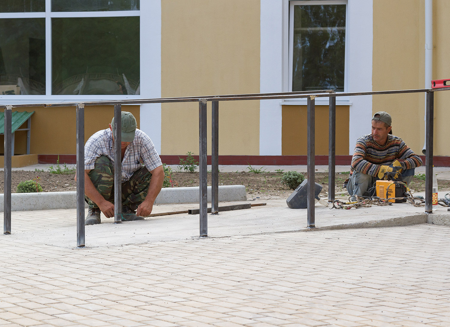 На стадии завершения находится и обустройство прилегающей территории. Заложено футбольное поле, волейбольная площадка, место под уличные тренажеры, теннисный стол и качели. Практически завершены прогулочные зоны и теневые навесы. Осенью и весной планируют также высадить деревья. Правительство окажет помощь в завершении этих работ.